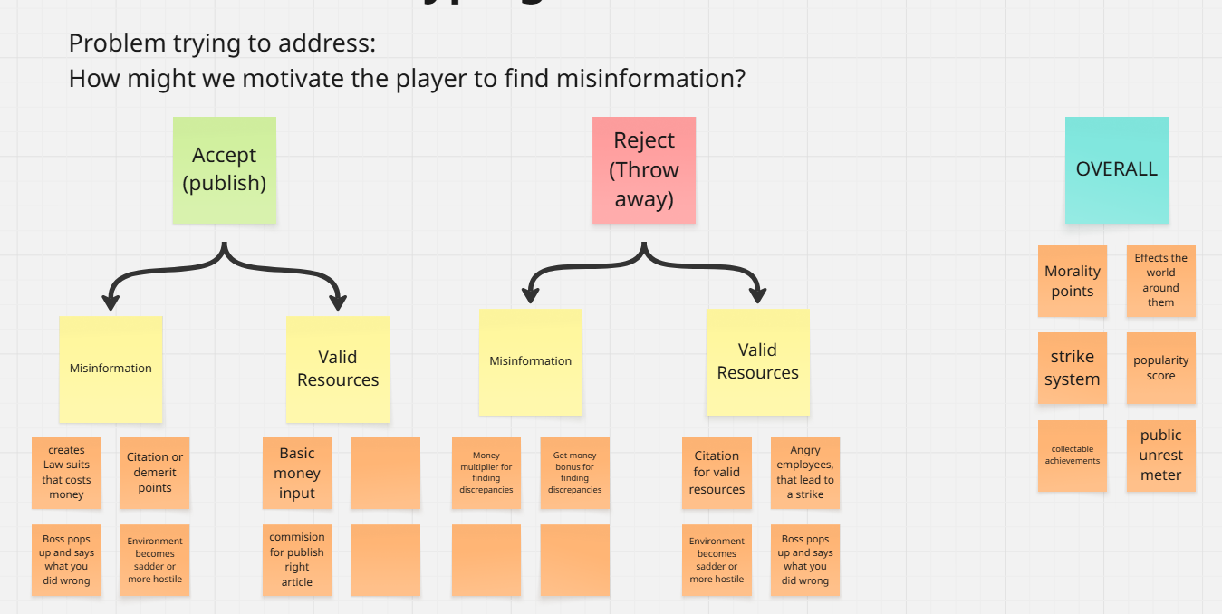 The player could tell that their actions had consequences in the real world, but beyond affecting the outside world, there was no motivation. There was no system set in place to punish or reward the player if they were taking the right actions. So, the players could do whatever they want, and they would go unpunished. Since this is a transformative game with the goal of teaching people how to recognize misinformation in articles, they should be notified when they make a mistake and be rewarded when they find a piece of misinformation.