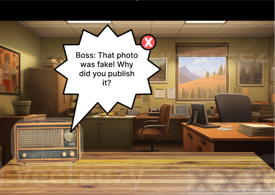 I chose to do it like this so that I can direct most of my focus on the punishment system. Showing the player any mistakes that they made while looking over the article. I did this by having a small section where your boss is yelling at you through a radio, to explain the mistake you made.